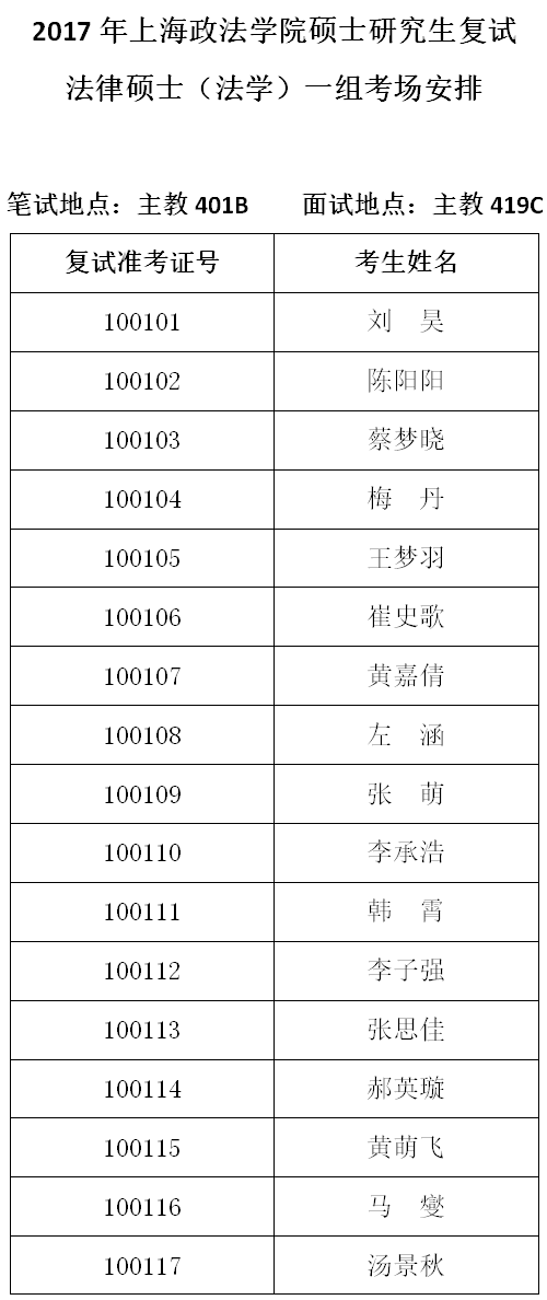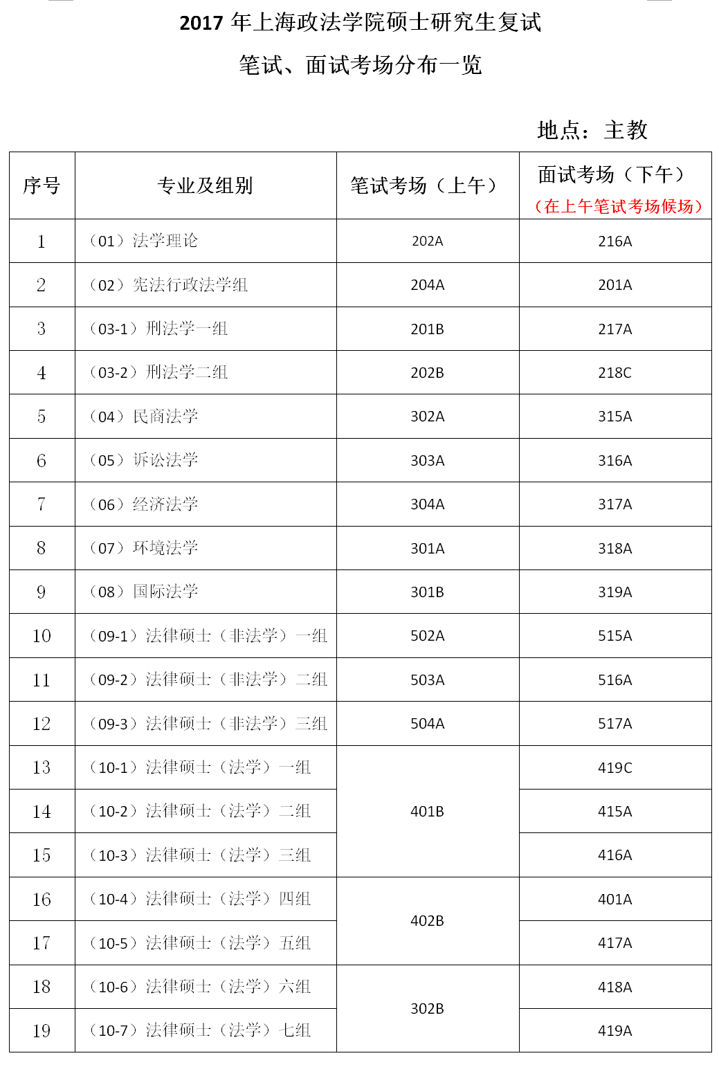 10-1法律硕士(法学)一组考场安排