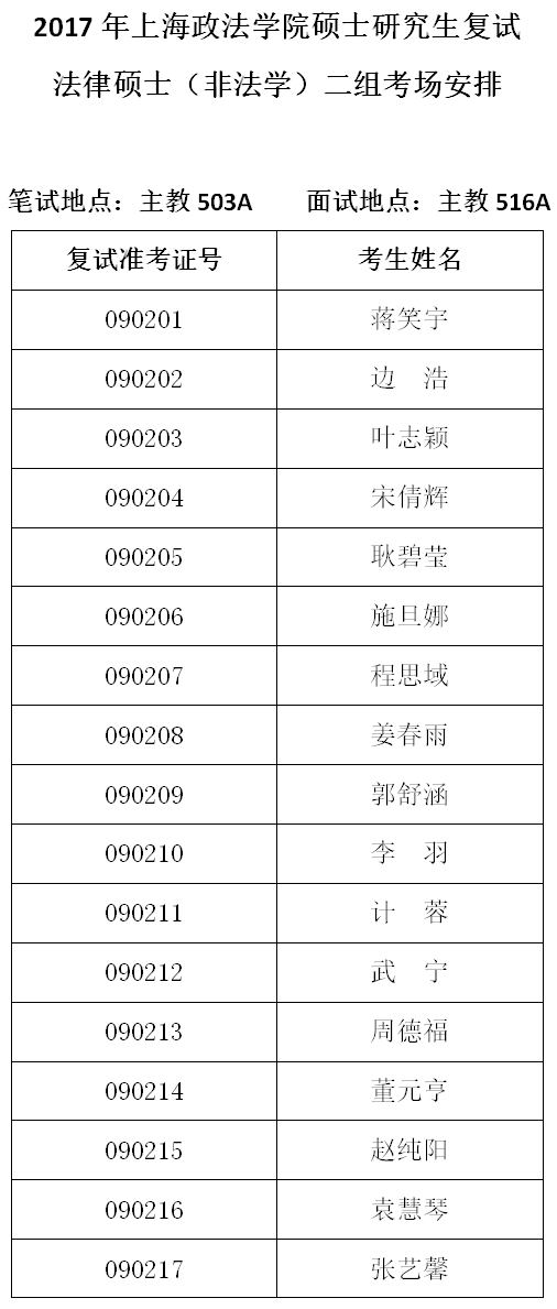 9-2法律硕士(非法学)二组考场安排