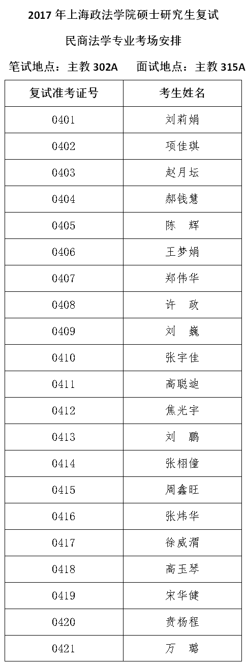 4民商法学专业考场安排