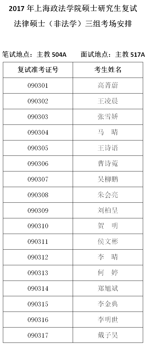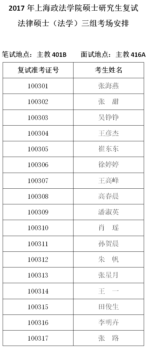 10-3法律硕士(法学)三组考场安排