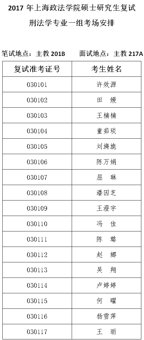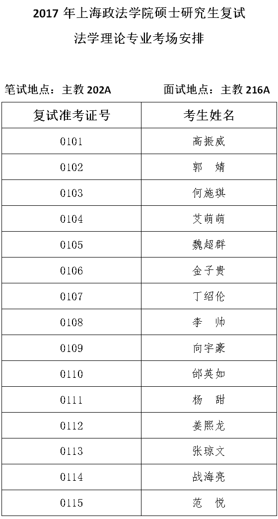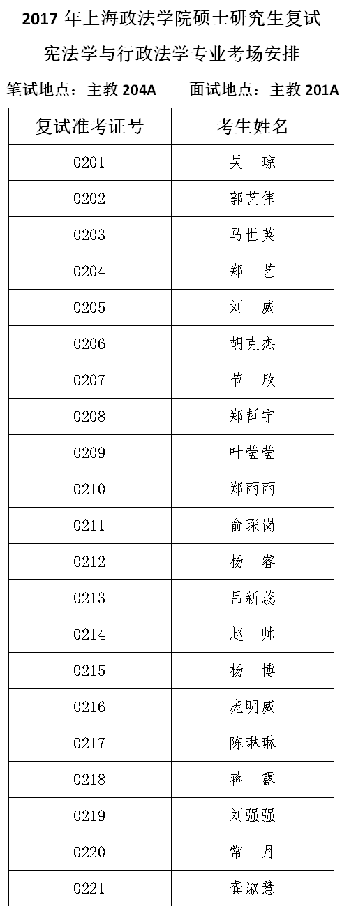 2宪法学与行政法学专业考场安排