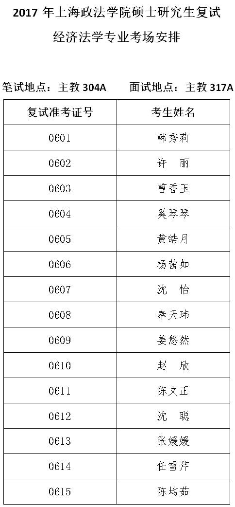 6经济法学专业考场安排