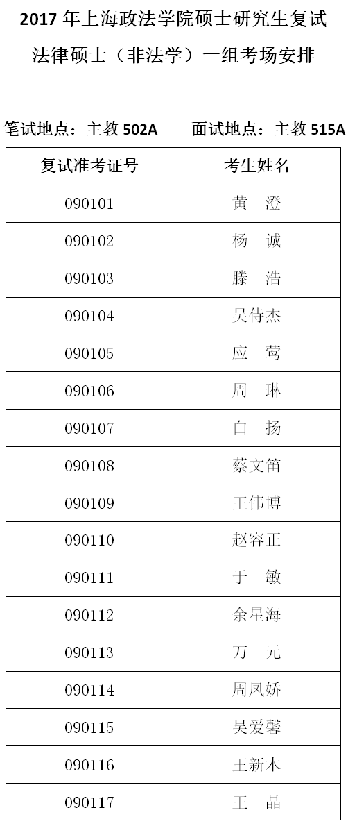 9-1法律硕士(非法学)一组考场安排