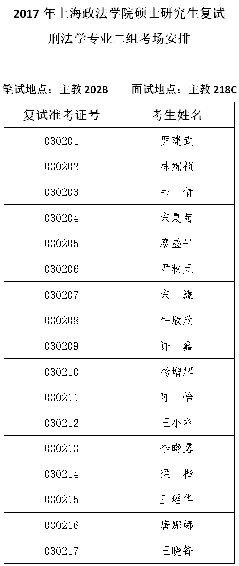 3-2刑法学专业二组考场安排
