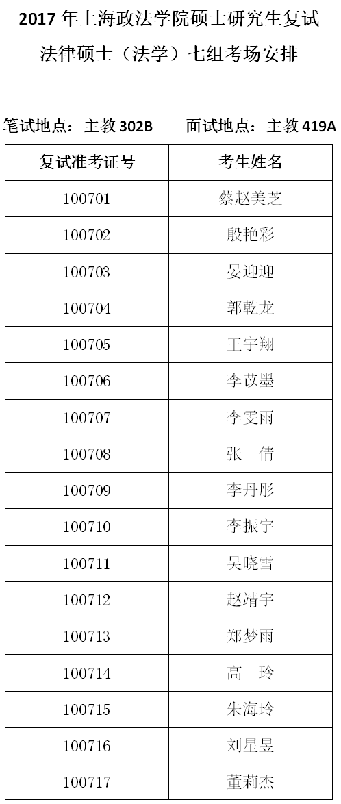 10-7法律硕士(法学)七组考场安排