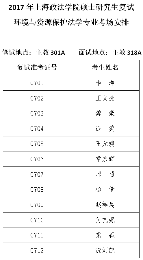 7环境与资源保护法学专业考场安排