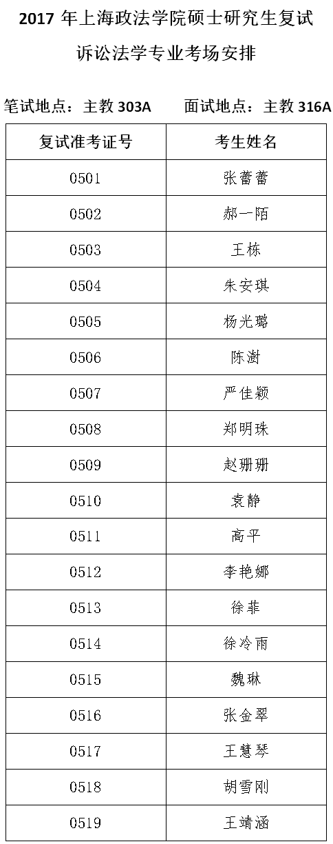 5诉讼法学专业考场安排