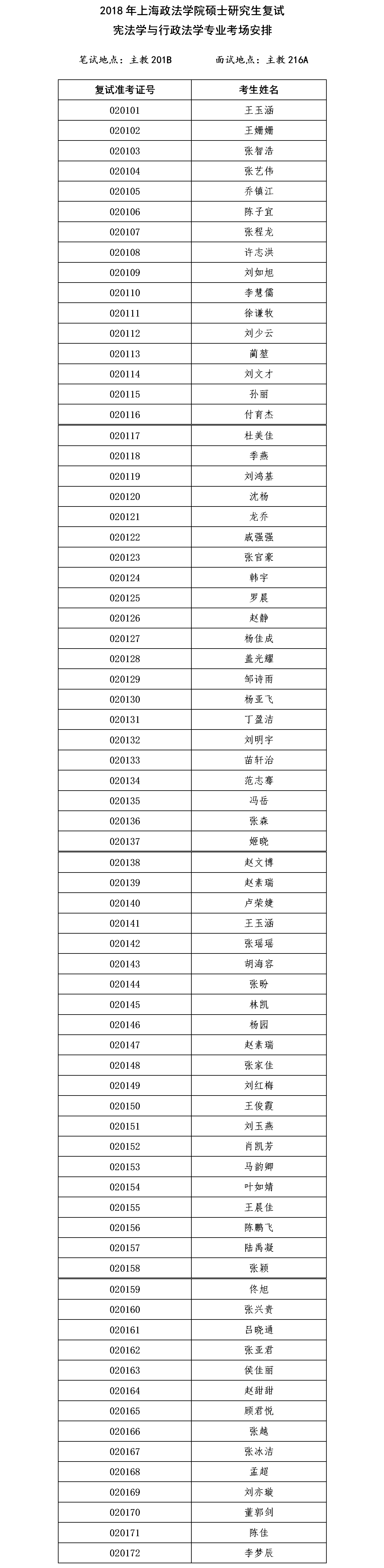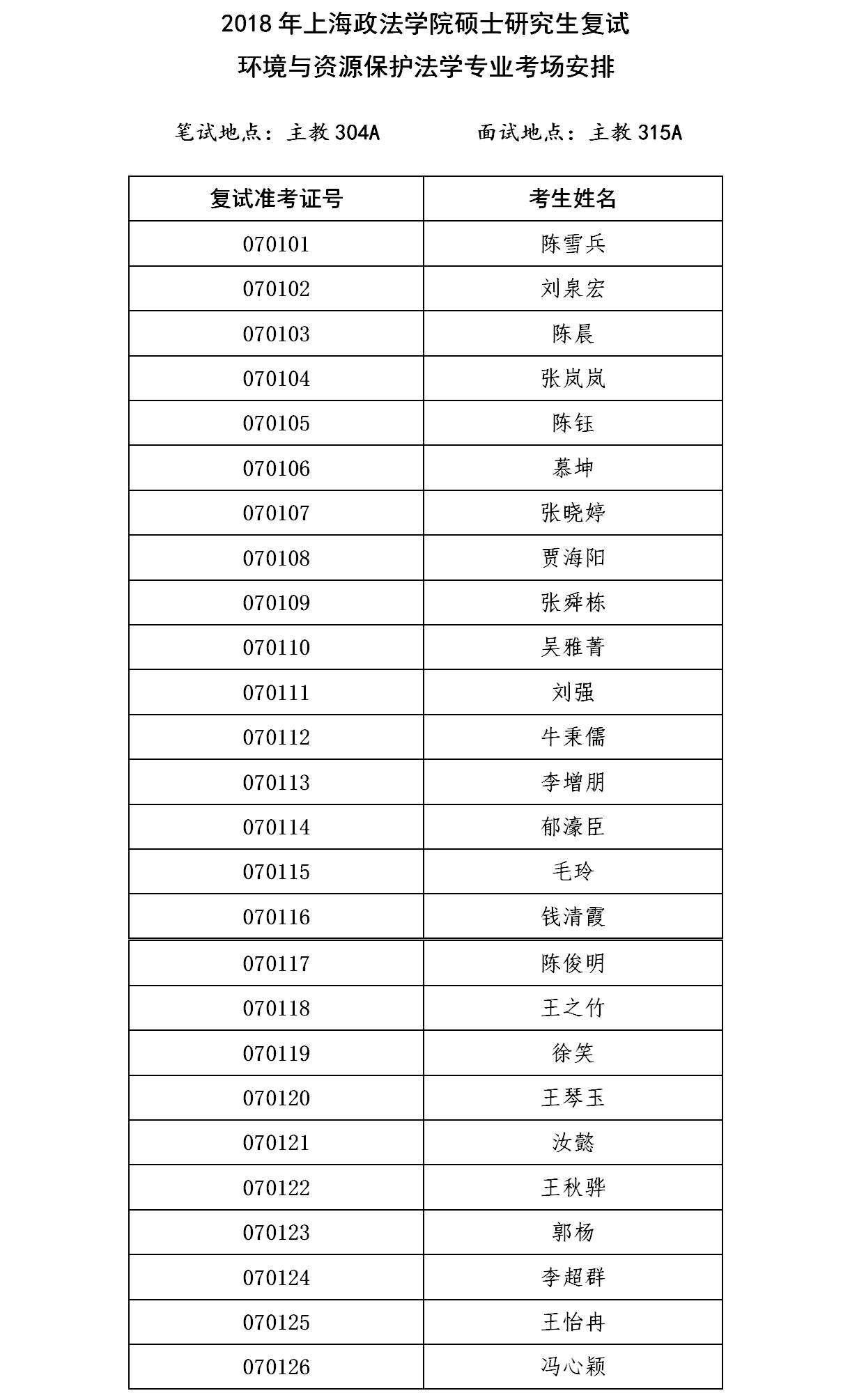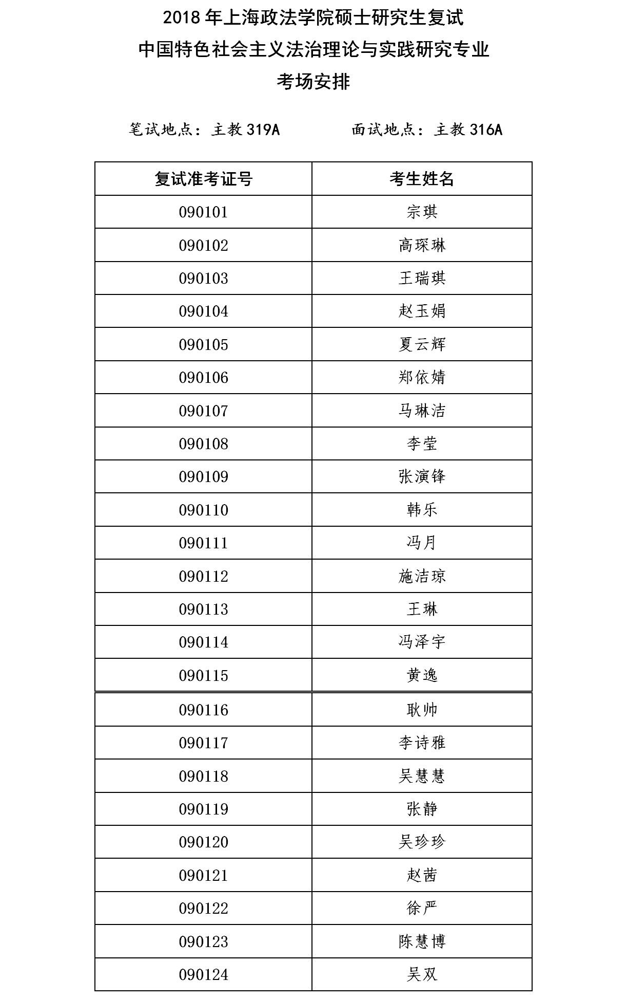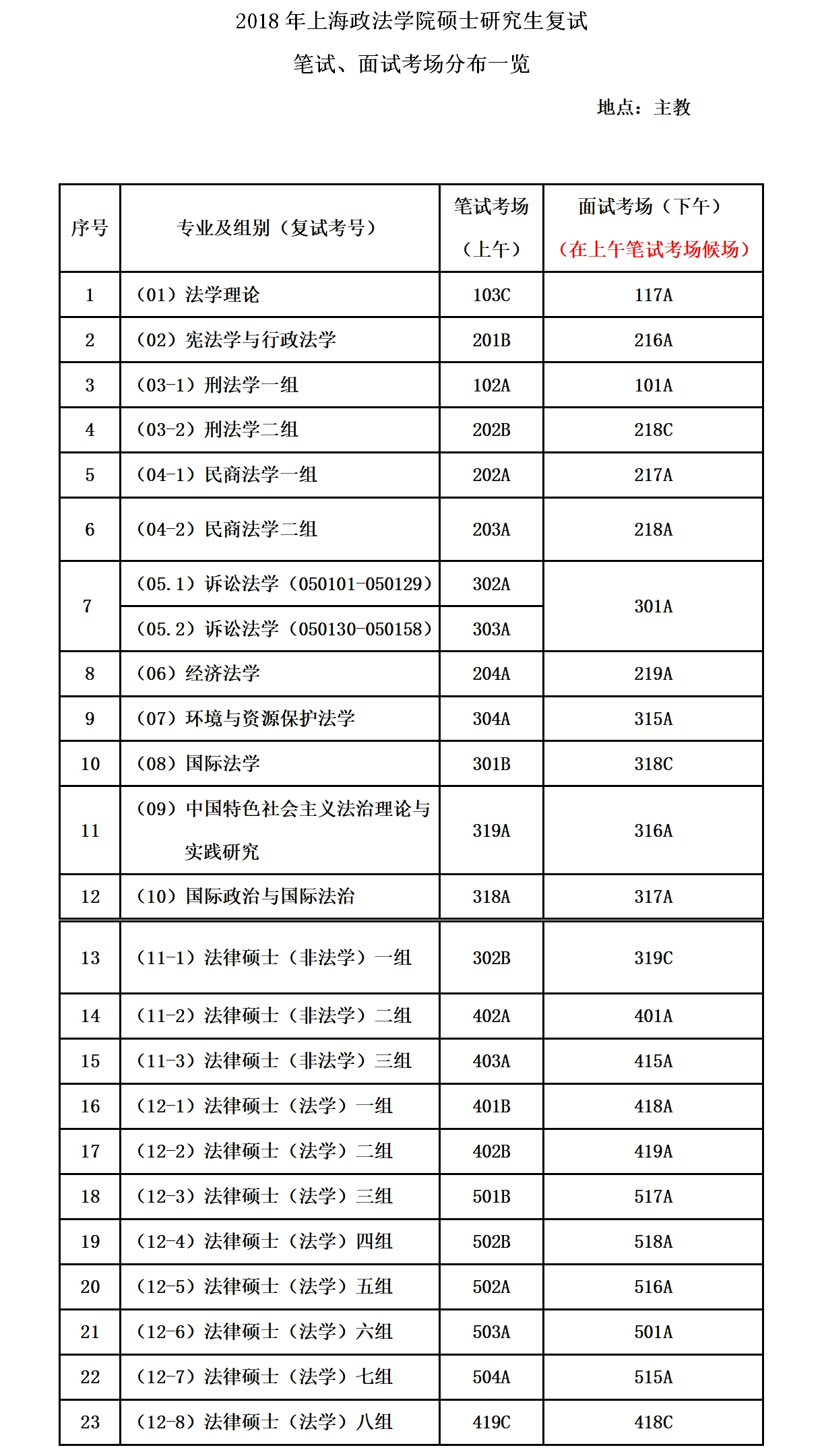 9.中国特色社会主义法治理论与实践研究专业考场安排