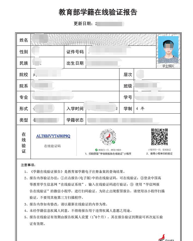 (3)《教育部在线学籍验证报告》《教育部学历证书电子注册备案表》需登陆中国高等教育学生信息网下载和打印。