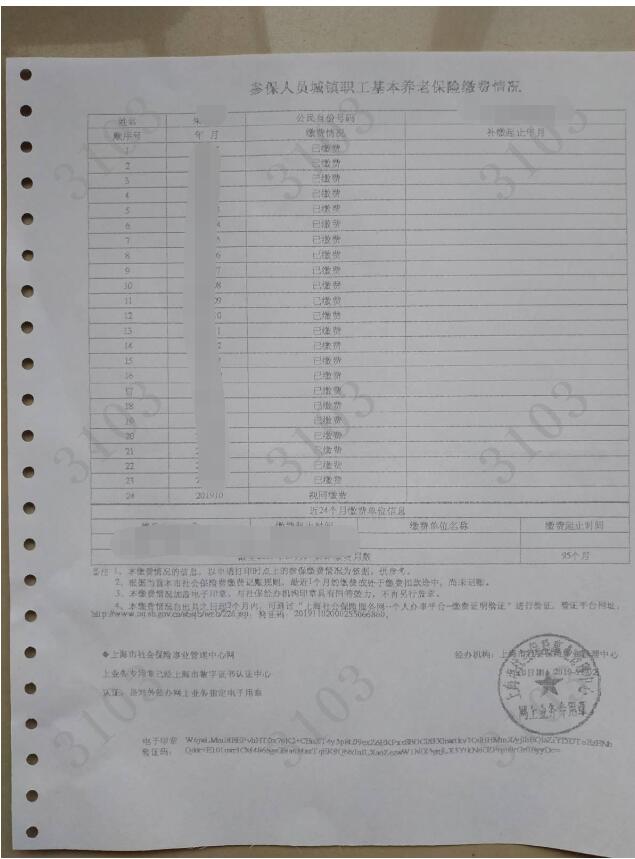 (5)非沪籍往届生提供2021年连续6个月在上海的社保缴费成功记录(需到社保网点打印《参保个人城镇基本养老保险缴费情况》,缴费状态是已缴费);