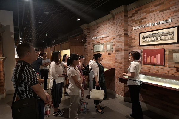 在上海市爱国主义教育基地三山会馆,讲解员结合“浦江早晨——纪念上海解放70周年实物史料展”,通过对报刊、传单、臂章、奖状、军功章、纪念特刊、解放区邮票等两百余件实物史料的现场讲解,为党员们讲解回顾了上海解放的历史往事,加深了大家对上海红色革命历史的了解,深刻缅怀了革命先辈不屈不挠、执着无畏的革命精神,为党员们现场上了一堂生动的党课。