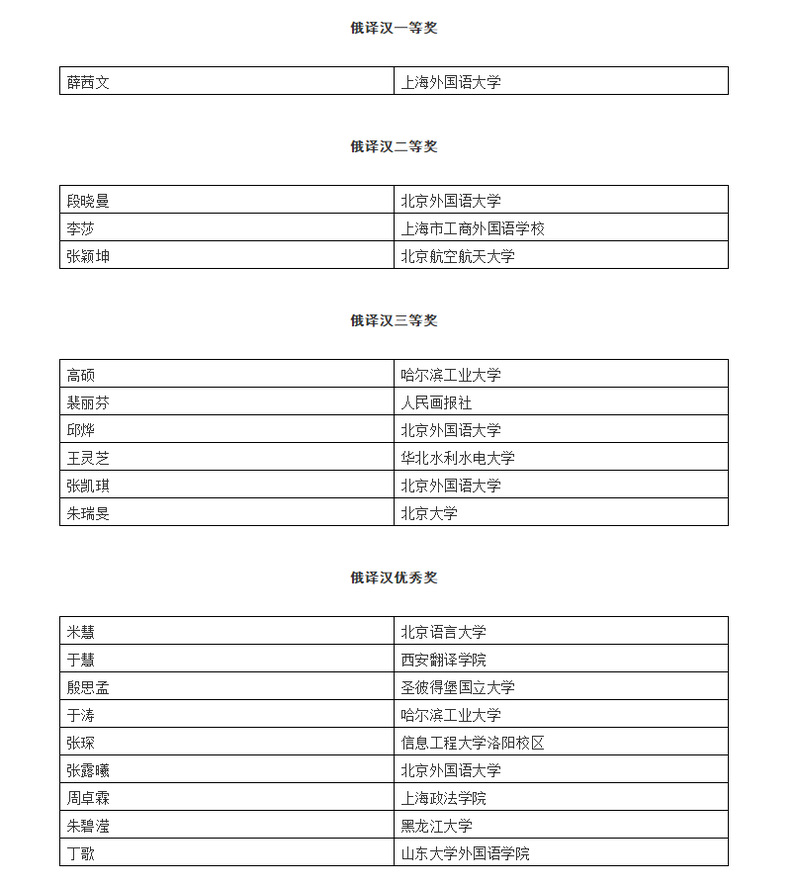 来自中国翻译协会的统计信息,第三十一届韩素音国际翻译大赛收到全世界有效参赛译文11900余份,经过三轮严格评审和终审讨论, 评出英、法、俄、西、阿5个语种十个奖项,每个奖项评出一、二、三等奖和优秀奖,共有获奖者346名,其中“俄译汉”项目共有19名获奖者,我校周卓霖同学入选。周卓霖同学目前在圣彼得堡国立大学攻读硕士。