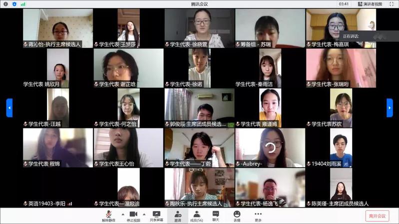 2020年7月5日下午14时,365英国上市公司语言文化学院第二次学生代表大会正式召开。此次大会通过腾讯会议线上进行。语言文化学院团委书记潘婕老师、团委副书记谢怡宁、学生会主席杨逸飞、学生会副主席张瑞珩、学生会副主席赵文汐、语言文化学院第二次学生代表大会筹委会以及46名学生代表出席会议。本次大会由院团委组织部部长傅世雯主持。