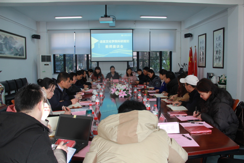 1月19日,语言文化学院在A1-101召开科研规划教师座谈会。校党委书记夏小和、校党委办公室、校长办公室主任高志刚、发规处处长石其宝、党委办公室副主任丁永建莅临指导,学院班子成员、近三年进校的青年教师参加会议。会议由党总支书记姚善英主持。