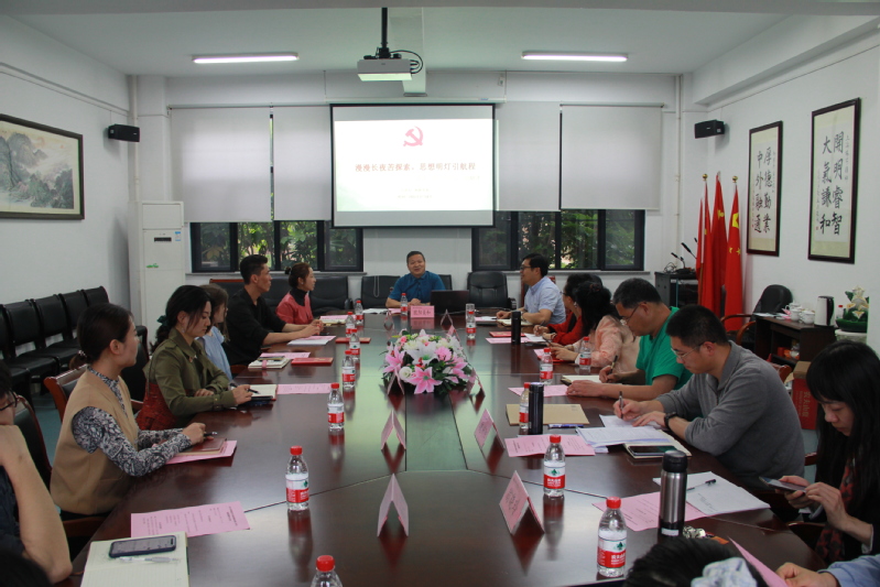 5月19日下午,语言文化学院党总支在A1-101会议室举办建党百年专题党课。国际交流学院院长兼党总支书记欧阳美和结合建党百年,以“漫漫长夜苦探索,思想明灯引航程——《共产党宣言》的翻译”为主题讲授专题党课。本次党课由语言文化学院党总支常务副书记(主持工作)魏传成主持,语言文化学院和国际交流学院师生党员代表参加。