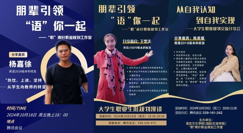 经验共分享,交流促成长。接下来,语言文化学院将持续开展“朋辈领航”系列主题活动,立足学生当下需求,切实为同学们提供专业前景发展、考研、考公、就业等方面的帮助,总结典型就业经验,形成特色案例集,加强大学生职业规划与就业指导教育,助力学生全面成长。