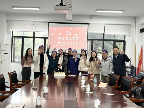 11月19日中午,在这个特别的日子里,语言文化学院(国际交流学院)在明文苑A1-101为11和12月份生日的教职工举办了一场温馨的集体生日会。