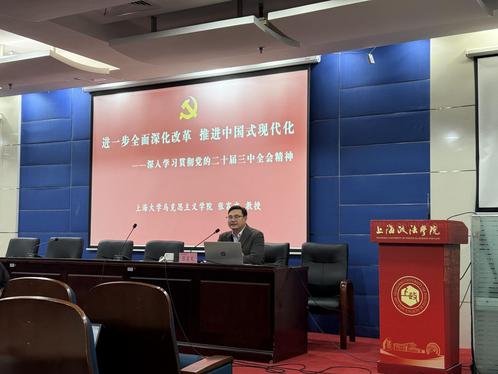 上海大学马克思主义学院教授张富文讲授了题为《进一步全面深化改革·推进中国式现代化——深入学习贯彻党的二十届三中全会精神》专题党课,生动阐释了进一步全面深化改革的重要性和必要性、明确了进一步全面深化改革的定位以及上海在推进中国式现代化的伟大实践中发挥的示范引领作用,号召大学生党员为推进全面深化改革贡献自己的力量。
