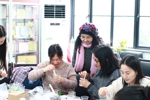 为庆祝第115个国际劳动妇女节,语言文化学院于3月5日中午在明文苑101室举办特色手作沙龙,以“沙画香氛蜡烛”“土耳其马赛克台灯”两大创意项目为载体,为近50名女教职工打造沉浸式艺术疗愈空间。活动特邀上海知生文化传播有限公司法人、茶于·1946手作课程开发人张家宁担任主讲老师,通过跨界艺术实践传递节日祝福。