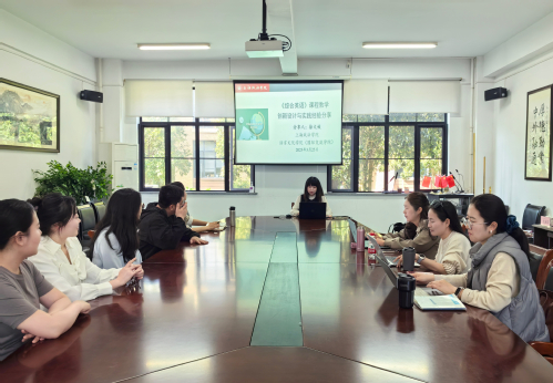 为持续深入推进语言文化学院的教风学风建设,进一步促进本科教学质量的提升,助力本科教学评估工作,我院于3月25日下午成功举办第二场专题教学研讨活动,特邀2024校教学示范岗、第四届上海市高校教师教学创新大赛一等奖获得者徐文姣老师作题为《综合英语课程教学创新设计与实践经验分享》的交流汇报。本次专题教研活动由副院长翁晓玲主持。