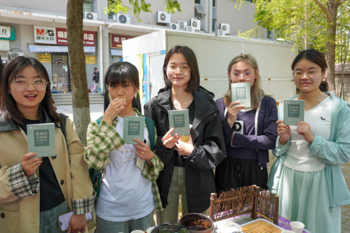 活动还创新设计了“线上答题+盲盒抽奖”环节,参与者可扫码完成茶文化趣味知识问答。答题后的同学均可现场领取由中国茶叶学会向本次活动赠送的茶文化科普书籍《一杯茶中的科学》《茶知识108问》(含中英双语版),答题通关的同学还可以参加茶叶盲盒抽奖。这种有趣的互动激发了同学们对茶文化的兴趣与热情,同时还有效地开展了茶文化科普。
