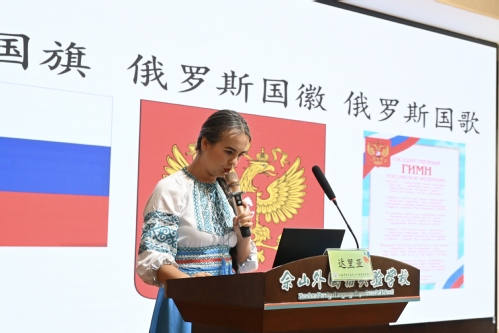 沙特阿拉伯留学生塞德从家乡独特的沙漠地理环境出发,向同学们介绍了沙特阿拉伯的社会文化;此外,他还解读了“沙特2030愿景”引领下的现代化转型实践,以及当地的教育制度。俄罗斯留学生达里亚向同学们介绍了俄罗斯的国家象征,并从文学、艺术、节日、饮食等角度展示了家乡的多彩文化;借助精美的图片,同学们也欣赏了莫斯科、圣彼得堡等地的标志性景观。