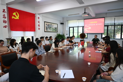 6月27日下午,语言文化学院顺利举办“从战歌到国歌——纪念《义勇军进行曲》诞生90周年”讲座暨大思政建设专题党课,本次讲座由上海市茶叶学会青工委主任、海派博物馆式茶文化会馆——“弄堂问茶”创始人牟健惟主讲,语言文化学院党总支副书记魏洲阳主持。语言文化学院党总支副书记(主持工作)周怡、副院长翁晓玲,以及学院师生代表参与,共同追溯国歌的历史渊源,感受其蕴含的爱国情怀。