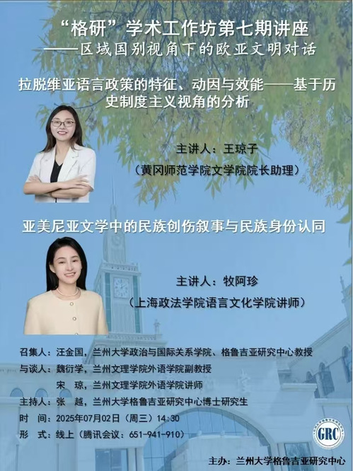 2025年7月3日,语言文化学院教师牧阿珍受兰州大学政治与国际关系学院格鲁吉亚中心邀请,开展该校“格研”学术工作坊第七期讲座——区域国别视角下的欧亚文明对话。