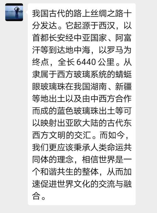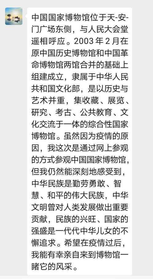 通过本次线上游览中国国家博物馆,观看“无问西东——从丝绸之路到文艺复兴”文物展览,支部党员通过观看中外文明互鉴的历史文物,切身感受东西方之间和平发展、共同进步的历史主流,体会到了文化交流的重要意义。如今,随着世界全球化的进一步深入,文化交流所带来的更广阔的视界,更是能够为促进人类命运共同体作出突出贡献。