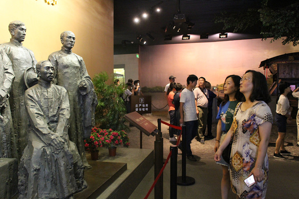 南湖革命纪念馆坐落在南湖河畔七一广场,宏伟壮观的展馆正门上方镶嵌着伟人邓小平题写“南湖革命纪念馆”七个金色大字,熠熠生辉,令人肃然起敬。馆内从鸦片战争的历史图片到新中国成立的影像资料,从不同版本的《共产党宣言》到视频短片《追梦》,呈现出中国共产党推动了历史上最广泛最深刻的社会变革,中国从半殖民地半封建社会到民族独立人民当家作主的新社会,从站起来、富起来到强起来这一壮举。怀着崇敬而自豪的心情,党员们在馆前集体合影留念。