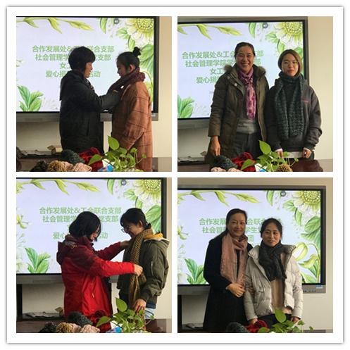 12月21日中午,合作发展处-工会联合党支部与社会管理学院学生党支部在教工活动室306开展爱心帮困结对活动。校工会、合作发展处、社会管理学院、校工会编织社教师代表以及部分学生代表出席了活动。
