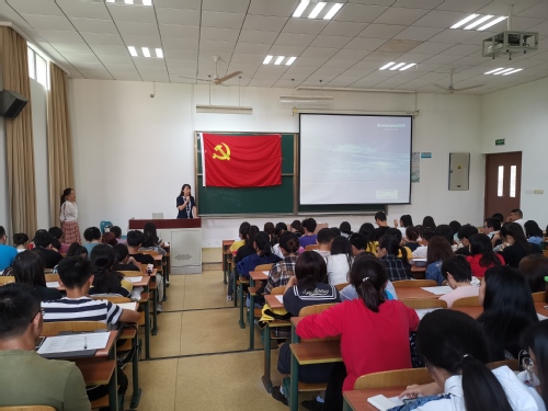 闯晓燕老师就党员发展规范化、制度化建设提出了明准的要求。她从全国约9000多万党员的科学管理角度,谈到了每一个基层党组织管理规范化、制度化的重要意义,再谈到每个党员、积极分子、入党申请人的自律问题。希望有意愿加入党组织的同志们,要用实际行动积极靠近党组织,积极学习党的理论和知识,积极参与党组织的各项活动,特别是谈到了近期正在如火如荼进行的“不忘初心,牢记使命”主题教育的重要意义,号召广大学子积极参与其中,多为党组织建言献策。最后,动员同学们坚守政治信念,争做模范表率。