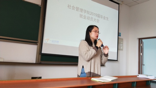为提升学生的就业动力和热情,给学生提供更专业的就业指导,1030日上午,社会管理学院在A8-201举行2019届毕业生就业动员会。学院党总支副书记陈娜以及带毕业班的辅导员出席会议,会议还邀请“一起求职”华东区总监曹元东为毕业生提供求职指导。