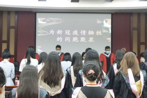 全体师生为新冠疫情牺牲的同胞默哀。