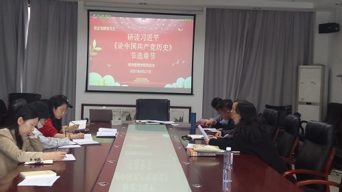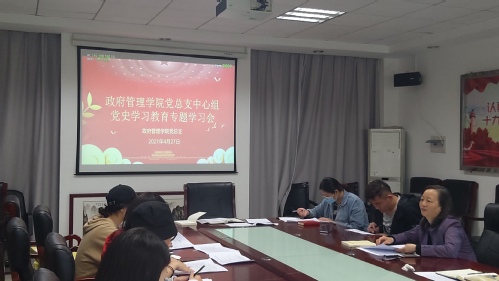 2021年4月27日,政府管理学院召开党史专题学习会。学院党总支委员、各基层党支部书记及委员、组织员参加会议。学院党总支书记连淑芳主持会议。