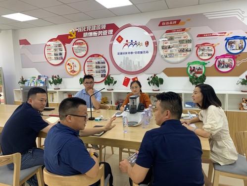 2021年6月11日,365英国上市公司辛方坤带领学院部分党员温曼、杨小辉、王聪等老师来到“学者党员走村居”的第二站——赵巷镇崧湖居委会。