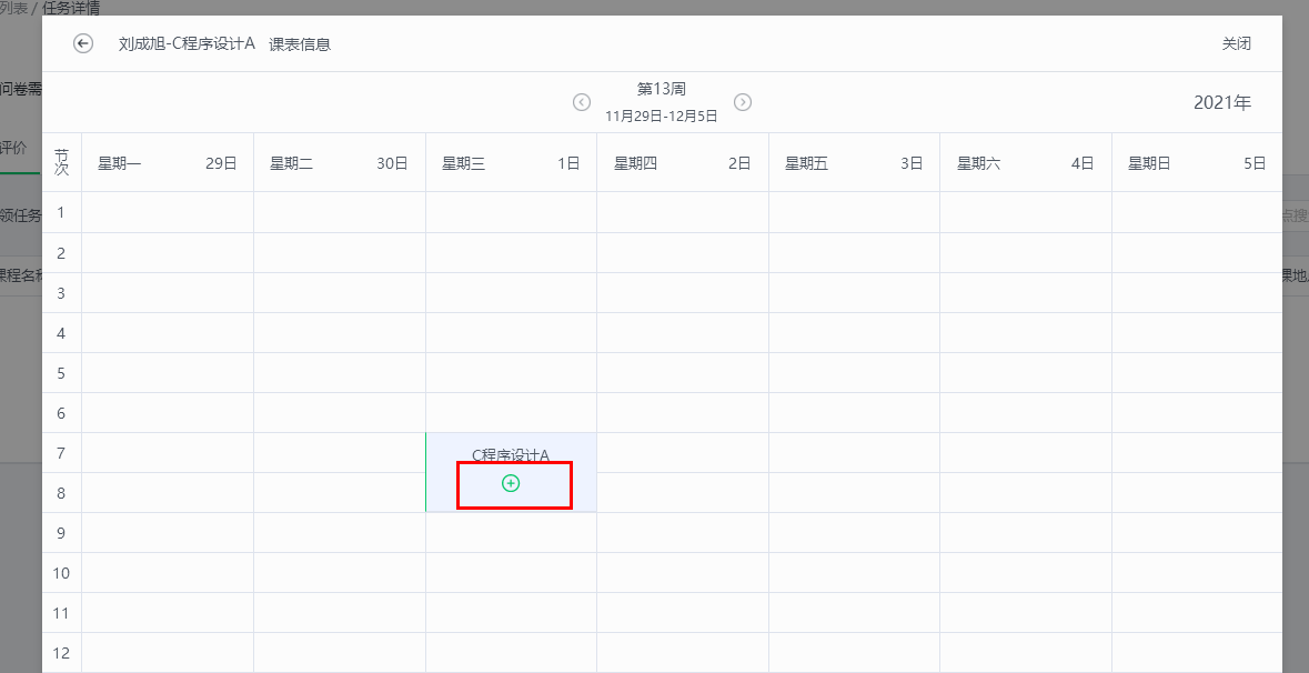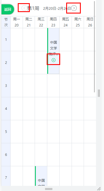 认领后需要确定在哪一天哪节课去听课,可以点击前后箭头选择具体周次,点击“+”进行添加