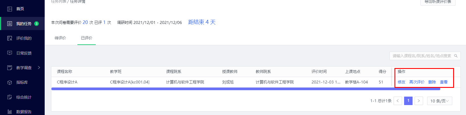 已评价的课程还可以进行修改、再次评价、删除等操作