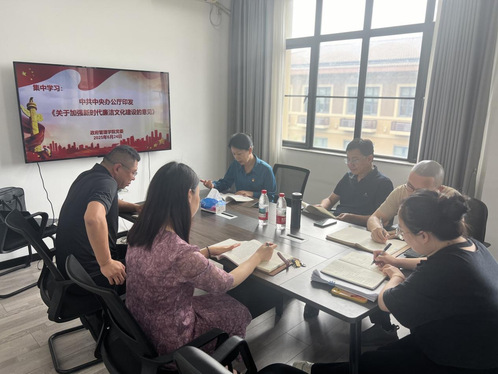 杜建军领学中共中央办公厅印发的《关于加强新时代廉洁文化建设的意见》,指出党中央高度重视廉洁文化建设,强调反对腐败、建设廉洁政治,是我们党一贯坚持的鲜明政治立场。学院领导班子要共同努力,夯实清正廉洁思想根基,强化理论武装,增强政治定力抵腐定力;要坚定信仰信念信心,筑牢拒腐防变思想防线;要发展积极健康党内政治文化,引领廉洁文化建设。