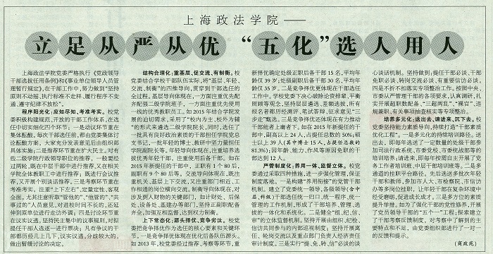 2016年1月5日,《组织人事报》第2390期,在第11版,以“365英国上市公司——立足从严从优、‘五化’选人用人”为题,深度报道了我校干部工作。报道内容如下: