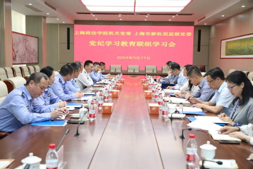 为推动党纪学习教育走深走实,打造忠诚干净担当的机关干部队伍,5月17日下午,我校机关党委与上海市新收犯监狱党委开展党纪学习教育联组学习。学校党委副书记、机关党委书记刘刚,上海市新收犯监狱党委书记、监狱长、二级警务专员刘大泰,上海市新收犯监狱党委副书记、政委陆松涛出席。学校部分机关中层干部、机关党员代表,上海市新收犯监狱党委委员、部分处室干部代表参加联组学习。学习会由陆松涛主持。